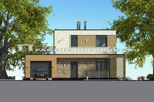 Двухэтажный дом с гаражом и плоской крышей ГБ-146 / 146,32 кв.м