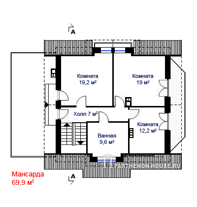 Одноэтажный дом с мансардой, без подвала. Максимальное количество жильцов: 5 человек.